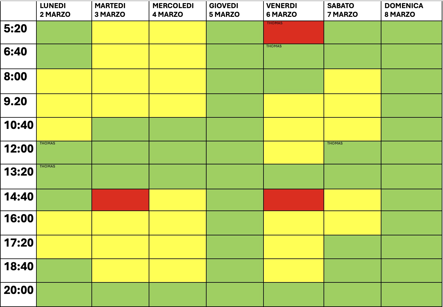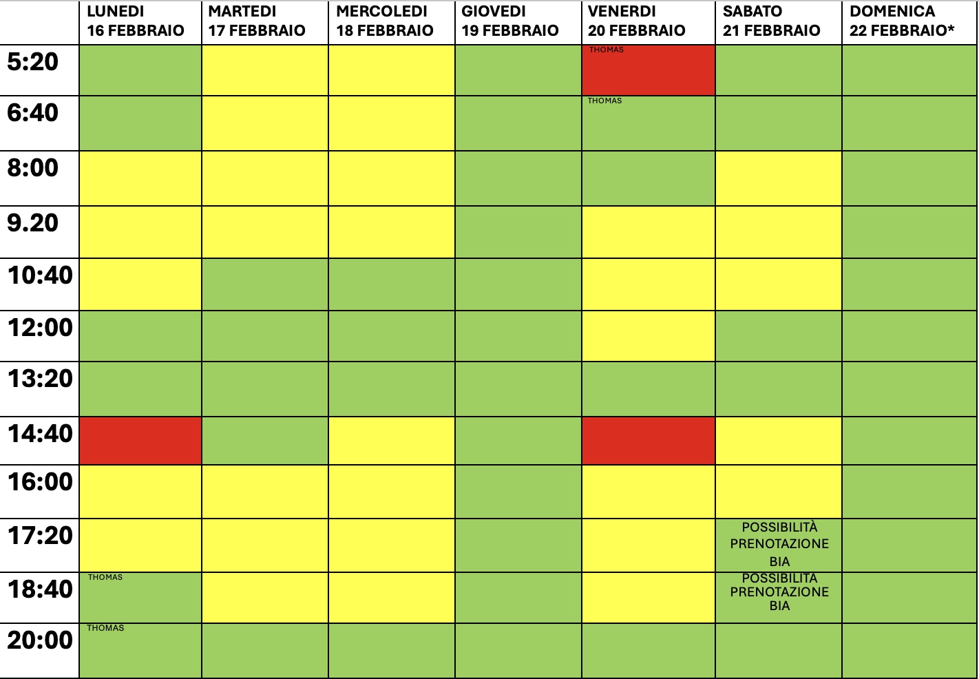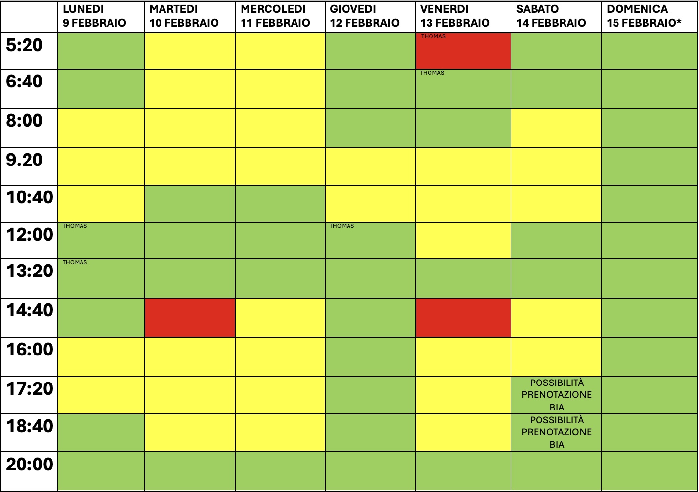 Prenota ora Personal Training con Thomas o allenamento in autonomia in base al colore dello slot in cui ti sei prenotato/a